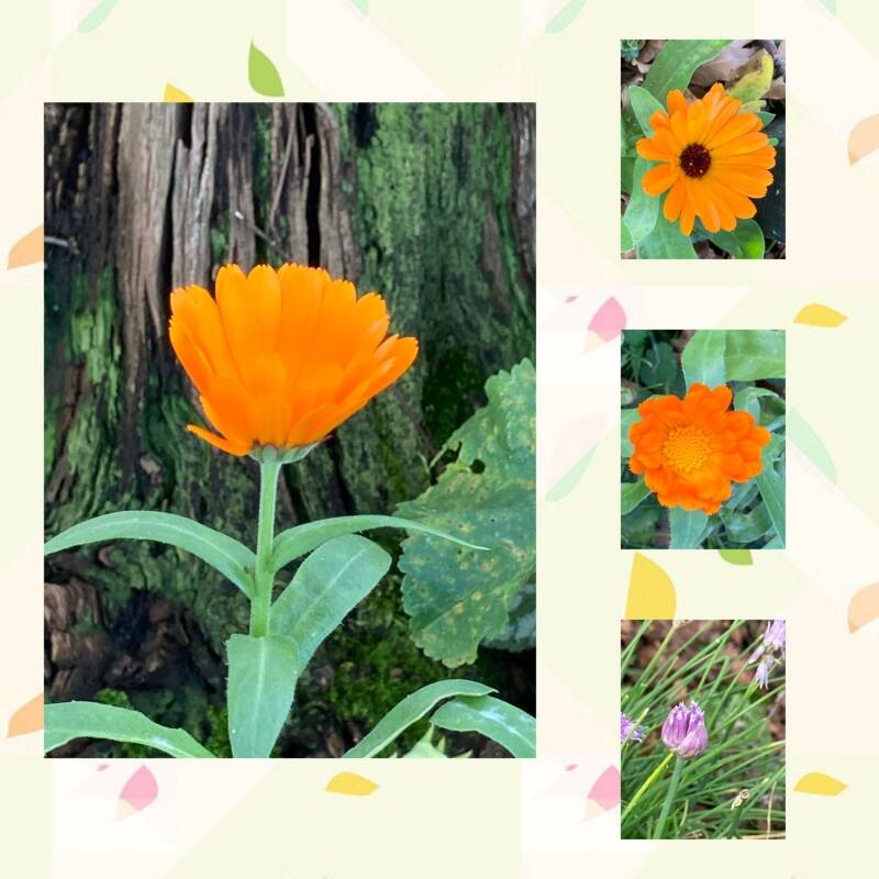 De laatste goudsbloemen bloeien en de bieslook geeft prachtige paarse bloemetjes.